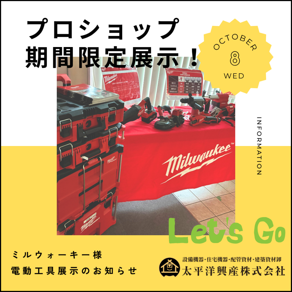 プロショップに期間限定でMilwaukee(ミルウォーキー)様の電動工具等を展示しております。