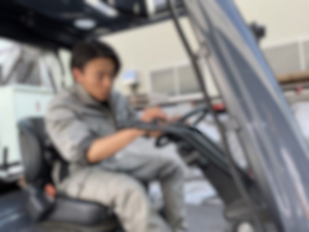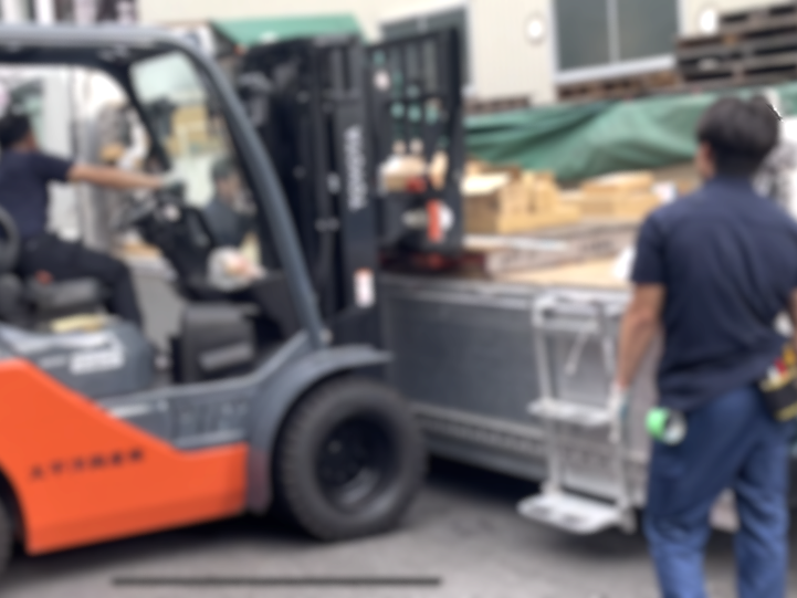 <外勤業務> フォークリフトでの格納、トラックなどでお客様の事務所や工事現場に商品をお届けする配送業務、工事中の建物内へ入り商品を納める搬入業務など。